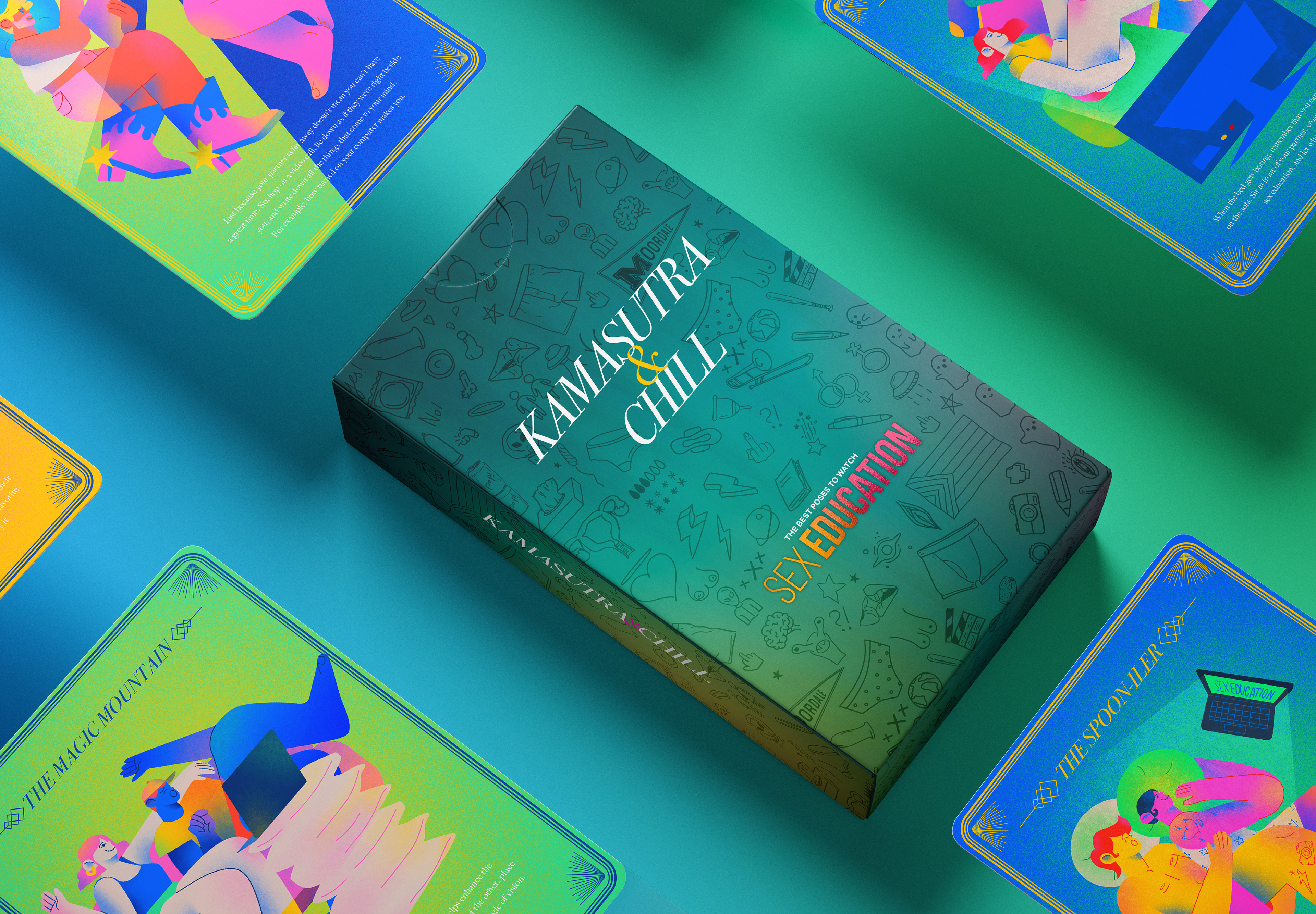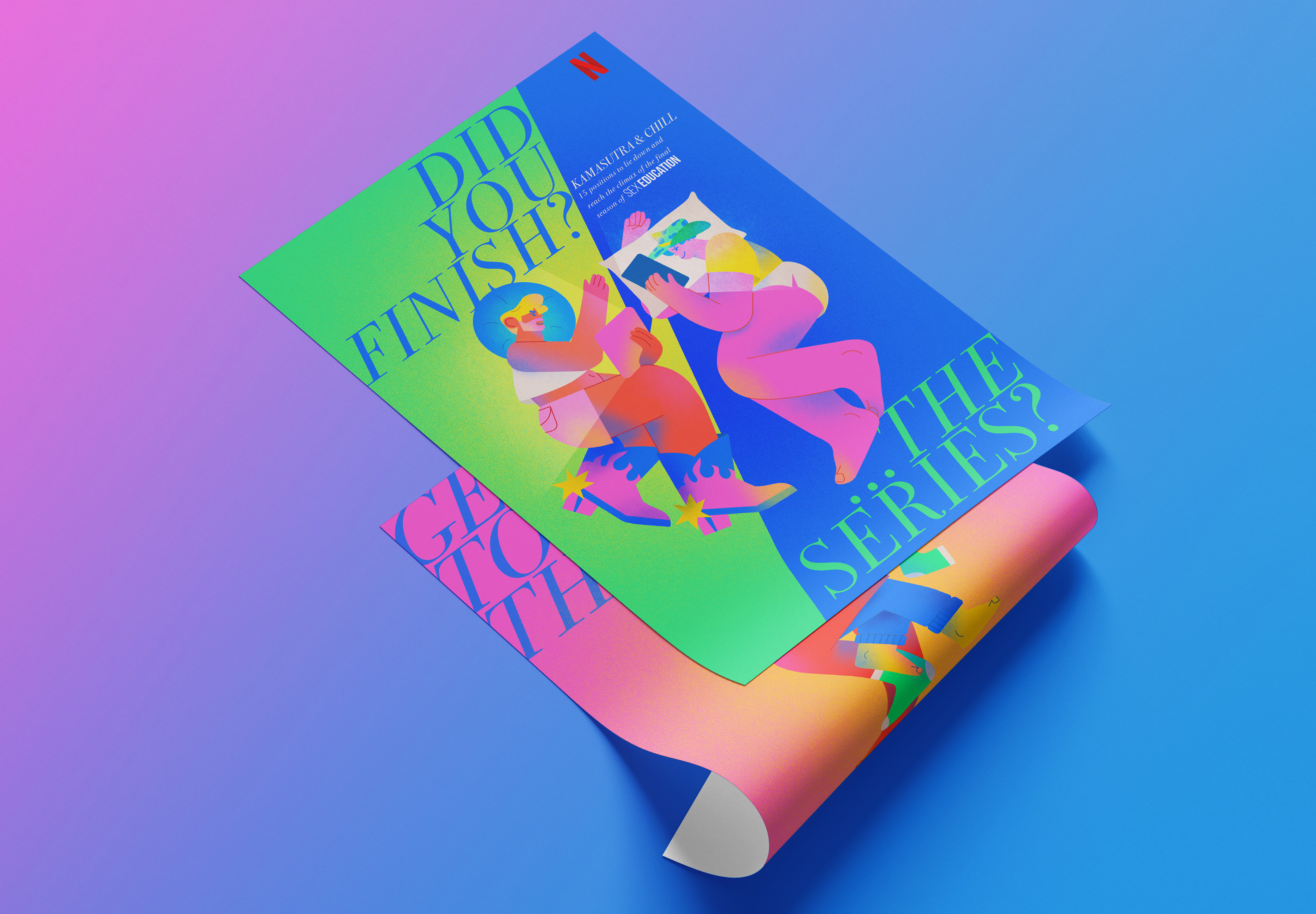 Sex Education was reaching its climax with its fourth and final season. For this reason, we decided to help its fans enjoy every last second of pleasure alongside their favorite characters. Inspired by the ancient tantric art of the Kama-Sutra, we reinterpreted and illustrated the best positions for watching the final season of Sex Education.