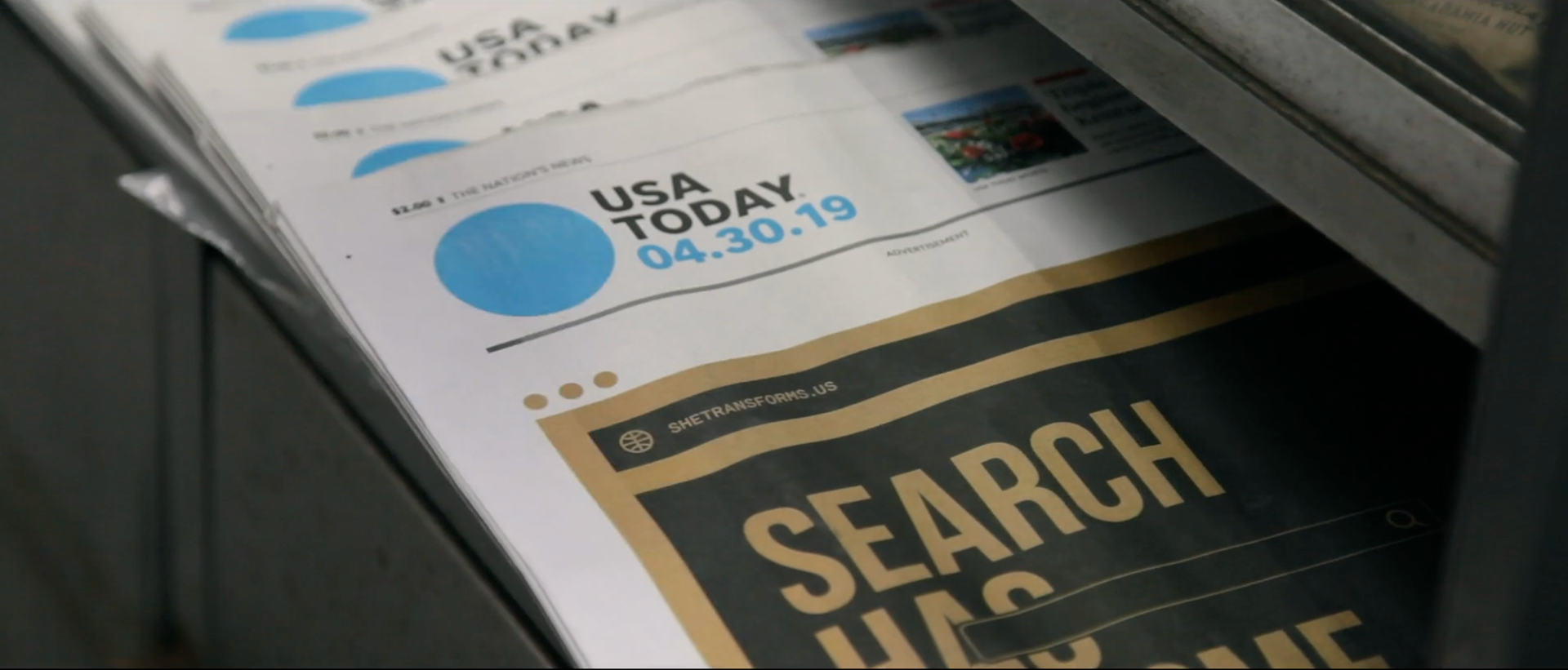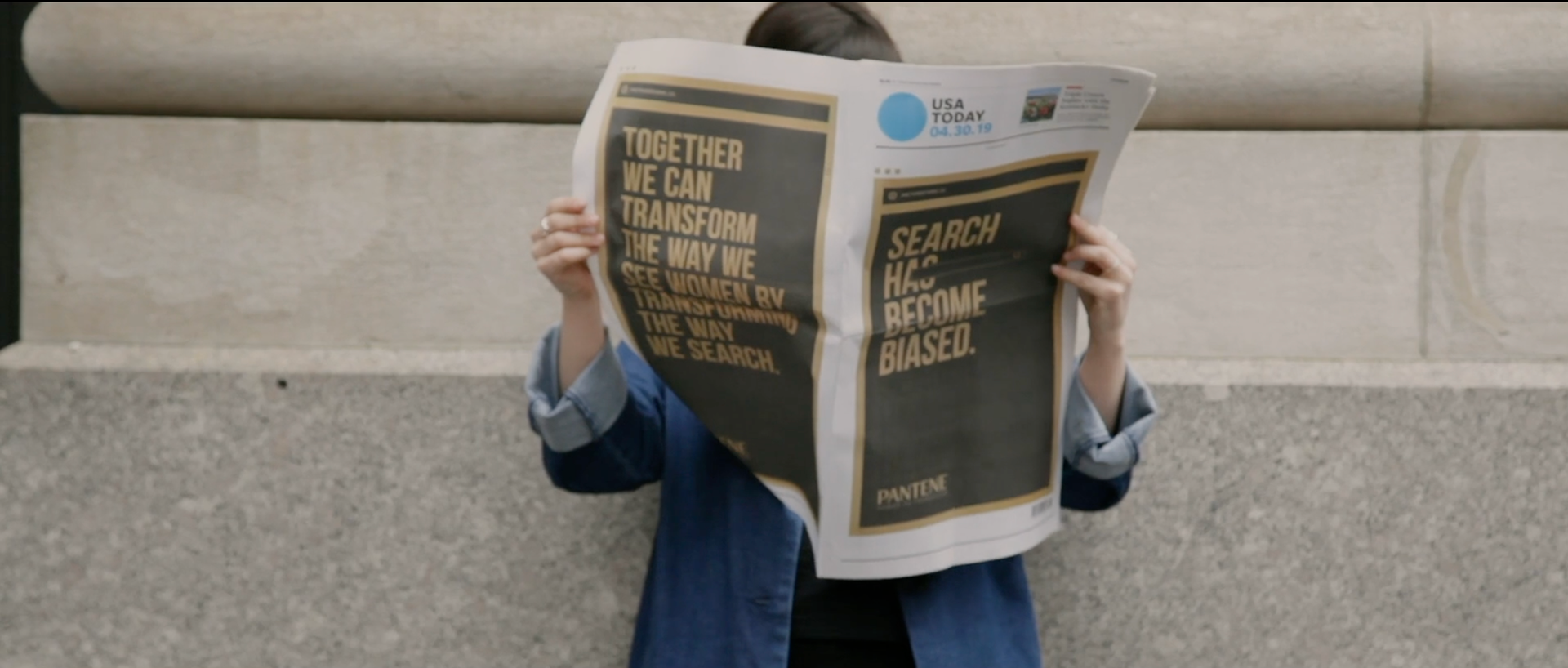 S.H.E. is the first Search. Human. Equalizer, impacting the way we search so cultural biases are not reflected. Right now in search, women's achievements aren't appearing when you search "greatest engineers" or "famous painters." SHE was created to raise awareness around the bias and accurately reflect women's achievements. We launched Pantene's S.H.E. with a full page takeover of U.S.A. Today and a film.